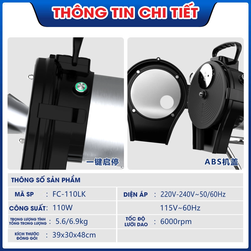 Với máy cắt FC-110LK, bạn sẽ không còn phải lo lắng về việc sơ chế nguyên liệu mất thời gian. Đặt mua ngay để trải nghiệm sự tiện lợi và hiệu quả trong từng bước chuẩn bị món ăn!